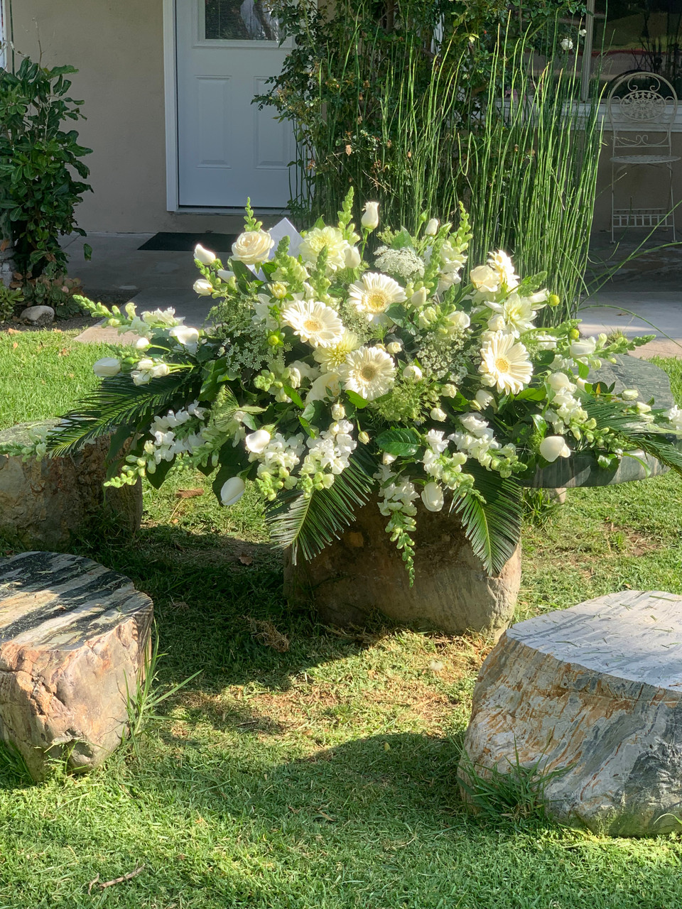 A BEAUTIFUL WAY TO COMMEMORATE THEIR LIFE, WITH THIS BEAUTIFUL WHITE CASKET SPRAY. EXPERTLY DESIGNED WITH IMPORTED ROSES,SNAPS , GERBERS,ORIENTAL LILIES AND MORE