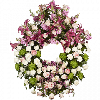 SEND YOUR DEEPEST CONDOLENCES WITH THIS BEAUTIFUL STANDING WREATH, FEATURING ROSES