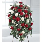 RED AND WHITE FRESH BLOOMS OF IMPORTED ROSES AND MORE.